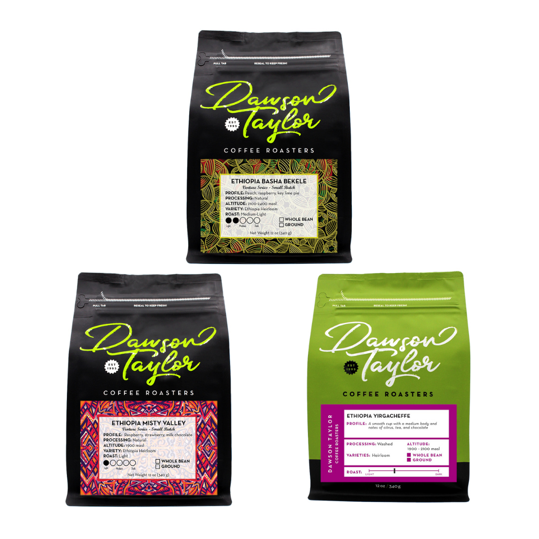 We are excited to offer this fun and unique Ethiopian coffee trio! This is a great opportunity to get 3 very distinct coffees from a similar region that all yield a very different cup. For $40, you'll get three 12-oz bags shipped to your door. Grab a friend and get tasting. Cheers to your ritual and routine!
