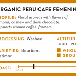 We are happy to feature this coffee that gives back to the female-owned farms from the CECANOR cooperative in Peru. Female coffee farmers in this area often live in rural conditions with little support in the areas of education and health. The CECANOR collaborative provides financial resources to improve community infrastructure and empowers women to be leaders in their community. Click here to read more about the Cafe Femenino Foundation.