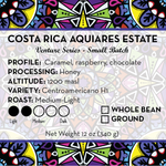 We hope you enjoy this complex but elegant profile from Aquiares Estate. It's delicious in batch brew, pour-over, and espresso—a truly versatile coffee!