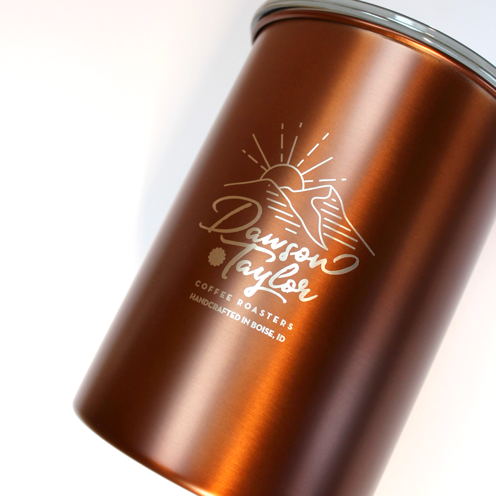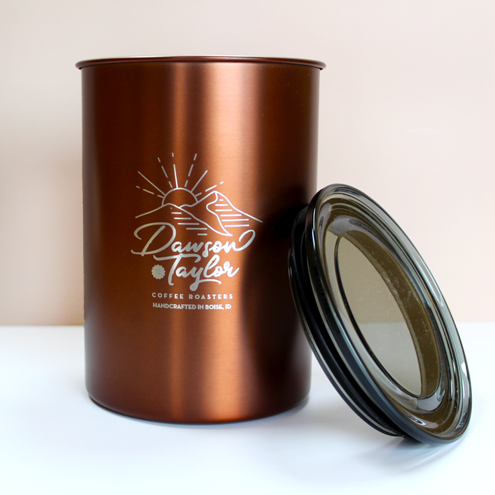 Keep your favorite DT coffee fresh and brew-ready in this 7" brushed copper Airscape canister. Stored in a cabinet, placed next to your favorite brew device, or displayed in your kitchen, this is the perfect addition to your coffee routine.