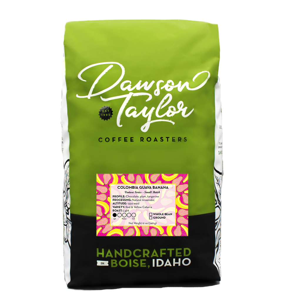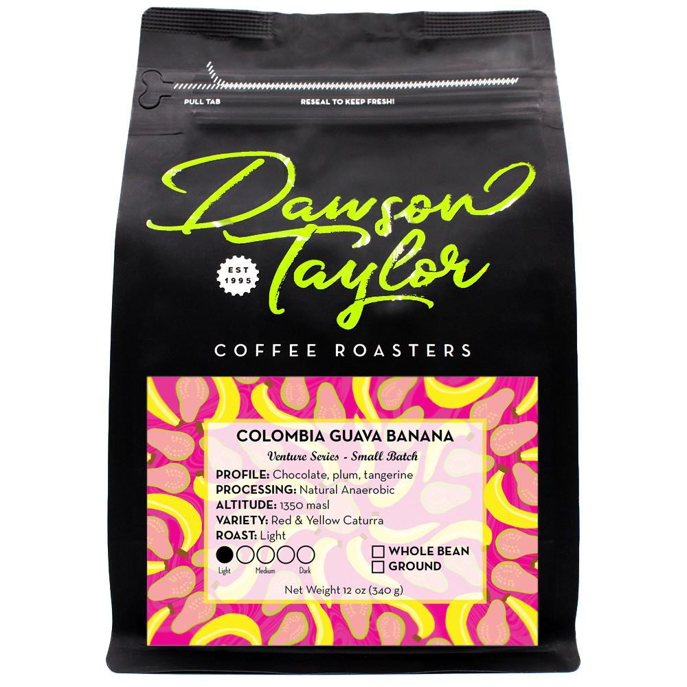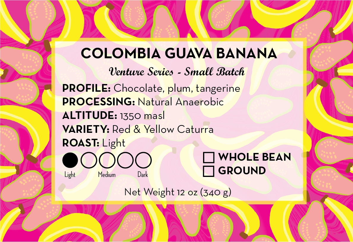 This coffee undergoes 48-60 hours of anaerobic fermentation, which enhances the unique profile and characteristics of this coffee. The name 'Guava Banana' is a play on the fruit Guanabana, which is known for a sweet and sour flavor and reminiscent of the coffee. The Bayters noticed visitors struggling to pronounce Guanabana, and the name Guava Banana was born.