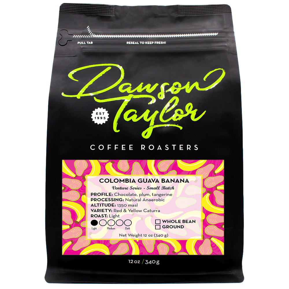 This coffee undergoes 48-60 hours of anaerobic fermentation, which enhances the unique profile and characteristics of this coffee. The name 'Guava Banana' is a play on the fruit Guanabana, which is known for a sweet and sour flavor and reminiscent of the coffee. The Bayters noticed visitors struggling to pronounce Guanabana, and the name Guava Banana was born.